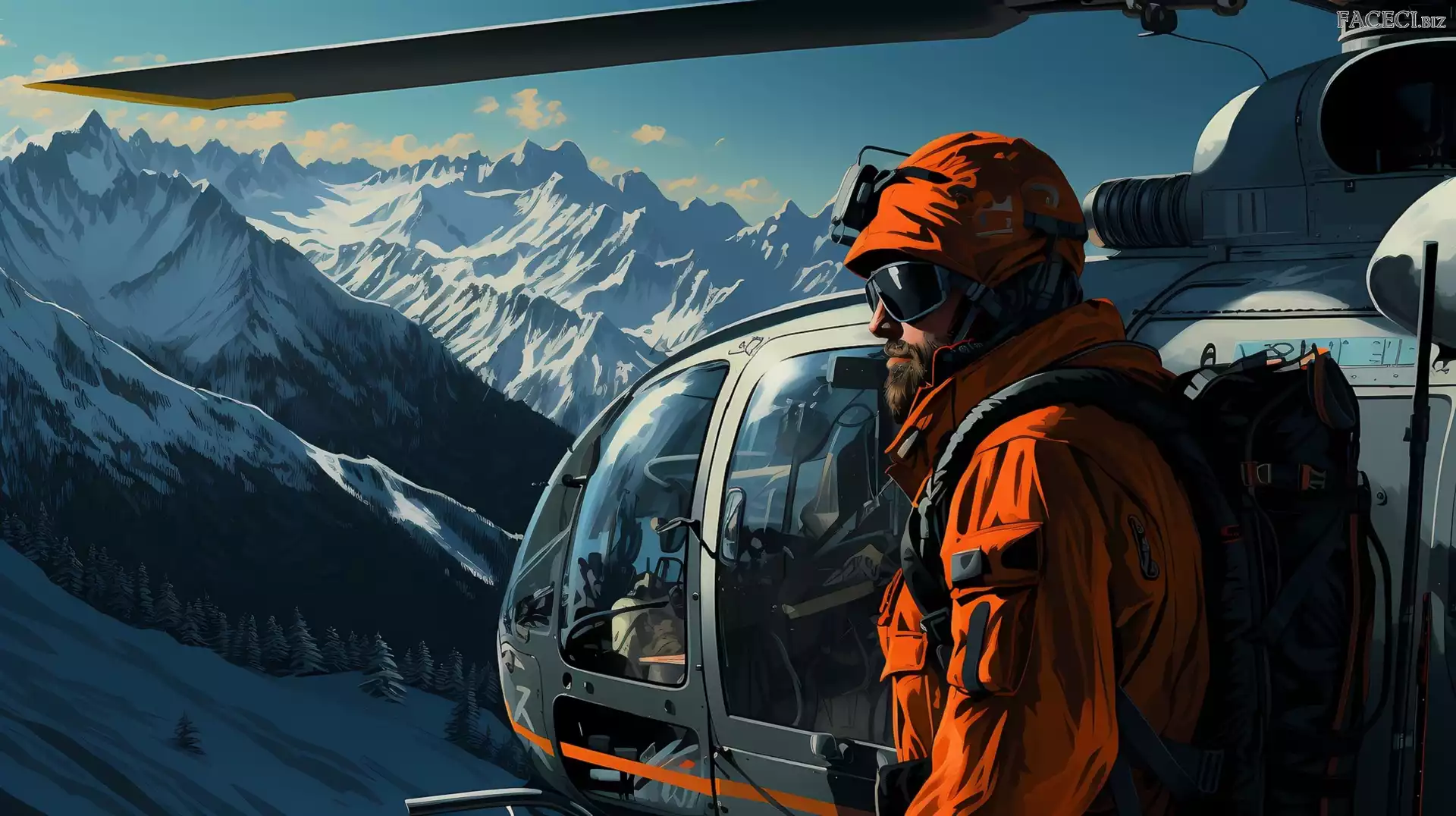 Mężczyzna, Helikopter, 2D, Zima, Góry - faceci.biz
