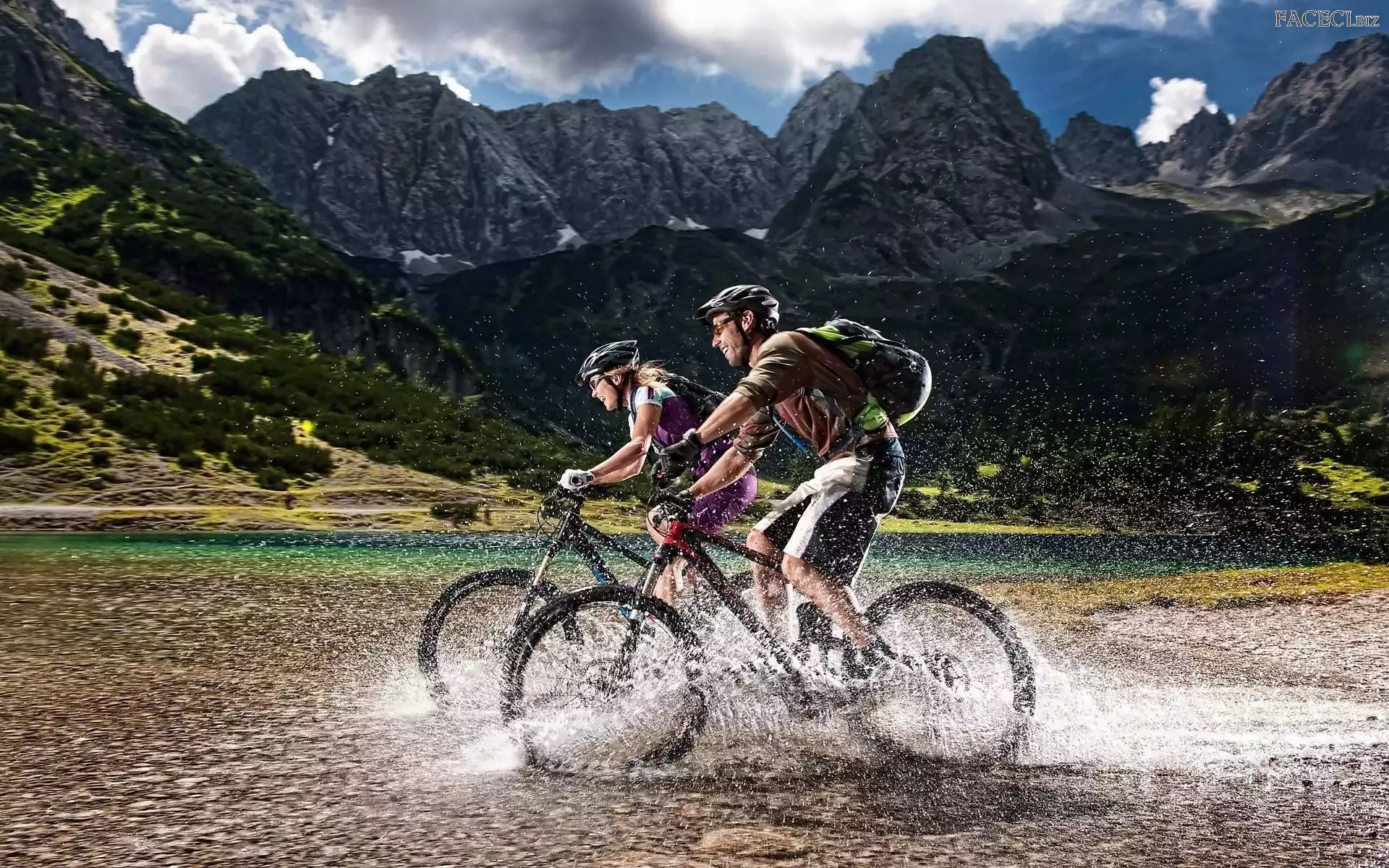 Turyści, Rzeka, Góry, Rowery - faceci.biz